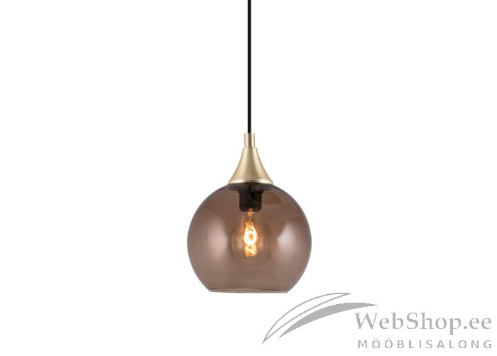 Pruuni värvi klaasist kupliga laelamp. Lambil on must tekstiilist kaabel. Lambile sobib elektripirn max 40W, sokliga E14. Valgusallikas ei kuulu komplekti. Lamp ühendatakse aknapõske pistikuga, vajadusel on võimalik pistik eemaldada ja ühendada juhtmetega. Skandinaavia disain.