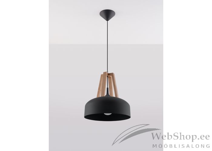 Stiilne puidust ja metallist laelamp. Viimistlus: must/naturaalne. Lambile sobib elektripirn max 60W, sokliga E27. Valgusallikas ei kuulu komplekti.