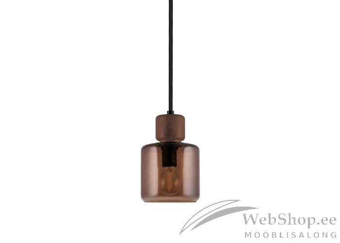 Pruuni värvi klaasist kupliga laelamp. Puidust detail. Lambile sobib elektripirn max 40W, sokliga E14. Valgusallikas ei kuulu komplekti. Lambil on must tekstiilist kaabel. Konkskinnitus. Valgustugevuse reguleerimise võimalus seinalülitist. Skandinaavia disain. Lampi on võimalik ühendada pistikusse, vajadusel saab ühendada ka juhtmetega.