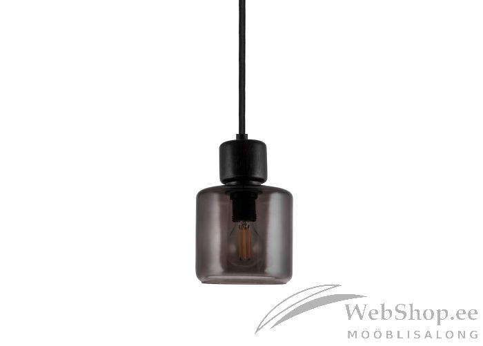 Suitsuse klaasist kupliga laelamp. Puidust detail. Lambile sobib elektripirn max 40W, sokliga E14. Valgusallikas ei kuulu komplekti. Lambil on must tekstiilist kaabel. Konkskinnitus. Valgustugevuse reguleerimise võimalus seinalülitist. Skandinaavia disain. Lampi on võimalik ühendada pistikusse, vajadusel saab ühendada ka juhtmetega.