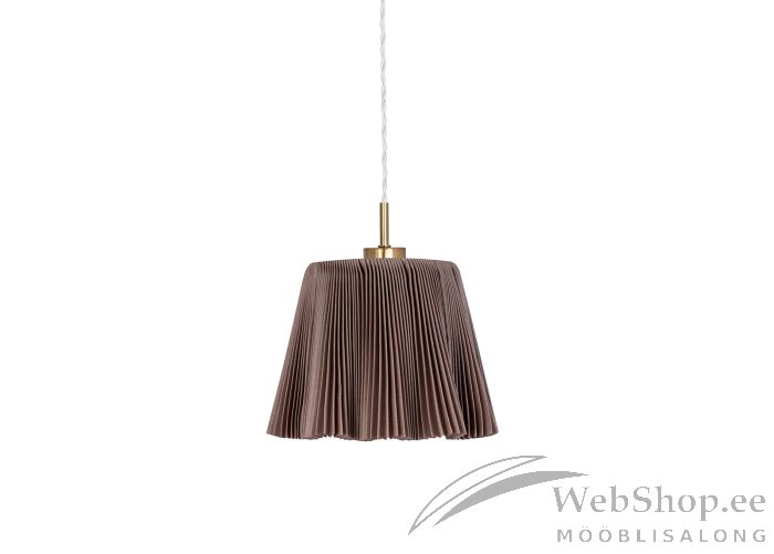 Messingu tooni metallist ja pruuni värvi tekstiilist kupliga laelamp. Valge tekstiilist kaabel. Lambile sobib elektripirn max 60W, sokliga E27. Valgusallikas ei kuulu komplekti. Lamp ühendatakse aknapõske pistikuga, vajadusel on võimalik pistik eemaldada ja ühendada juhtmetega. Skandinaavia disain.