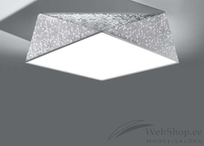 Stiilne hõbedast värvi PVC materjalist laelamp. Lambile sobivad elektripirnid 3x max 60W, sokliga E27. Valgusallikad ei kuulu komplekti.