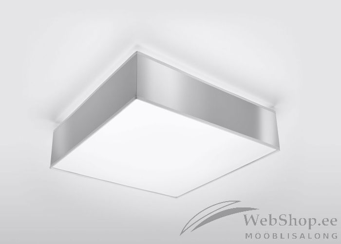 Stiilne halli värvi PVC materjalist laelamp. Lambile sobivad elektripirnid 2x max 60W, sokliga E27. Valgusallikad ei kuulu komplekti.