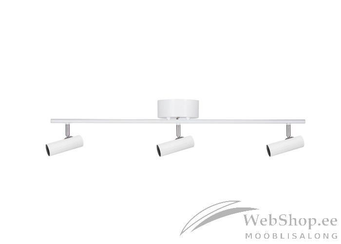 Modernses stiilis laelamp. Valmistatud valget värvi metallist. Kuplite suund on reguleeritav. Sobivad elektripirnid 3x max 28W, sokliga GU10. Valgusallikad ei kuulu komplekti. Skandinaavia disain.