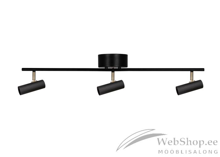 Modernses stiilis laelamp. Valmistatud musta värvi metallist. Kuplite suund on reguleeritav. Sobivad elektripirnid 3x max 28W, sokliga GU10. Valgusallikad ei kuulu komplekti. Skandinaavia disain.