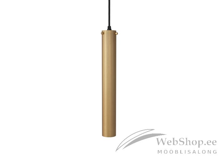 Harjatud messingi värvi metallist laelamp. Lambile sobib elektripirn max 40W, sokliga E14. Valgusallikas ei kuulu komplekti. Konkskinnitus. Lamp ühendatakse aknapõske pistikuga, vajadusel on võimalik pistik eemaldada ja ühendada juhtmetega. Skandinaavia disain.