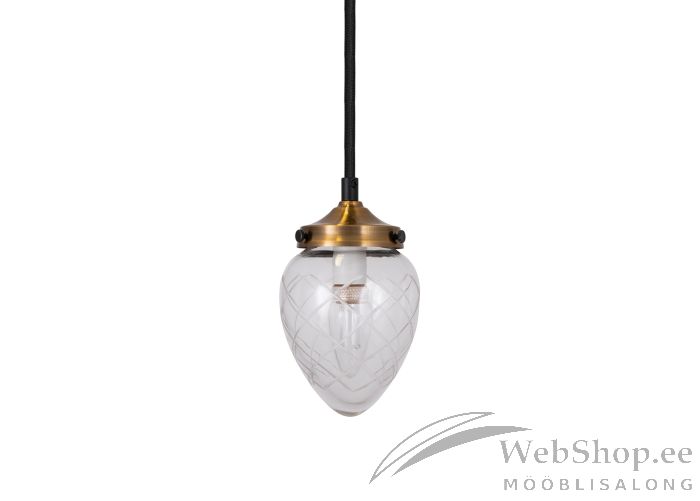 Läbipaistvast klaasist kupliga laelamp. Lambile sobib elektripirn max 40W, sokliga E14. Valgusallikas ei kuulu komplekti. Lambil on must tekstiilist kaabel. Konkskinnitus. Valgustugevuse reguleerimise võimalus seinalülitist. Skandinaavia disain. Lampi on võimalik ühendada pistikusse, vajadusel saab ühendada ka juhtmetega.