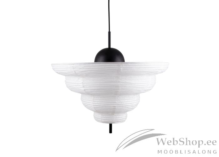 Aasiast inspireeritud laelamp. Lambi kuppel on valget värvi paberist, musta värvi detailid. Konkskinnitus. Musta värvi tekstiilist kaabel. Lambile sobib elektripirn max 60W, sokliga E27. Valgusallikas ei kuulu komplekti. Rootsi disain.