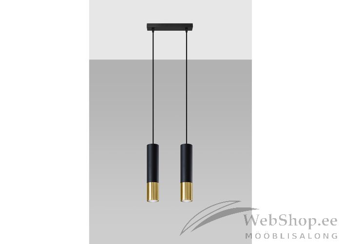 Elegantse välimusega minimalistlik laelamp. Matt must ja kuldne teras toetavad nii klassikalist, kui ka kaasaegset sisekujunduses. Valgusallikas 2x40W võimsusega ning GU10 sokliga. Pinge 220V, kaitseaste IP20. Valgusallikad ei kuulu komplekti.