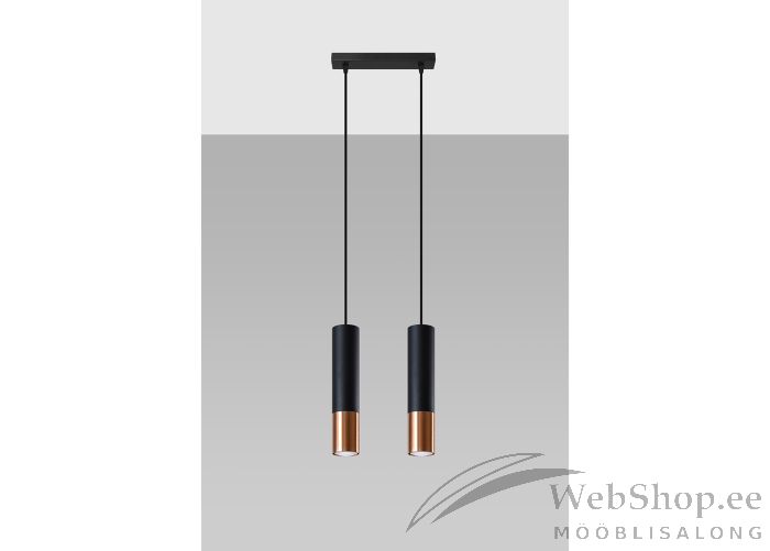 Elegantse välimusega minimalistlik laelamp. Matt must ja läikiv vask teras toetavad nii klassikalist, kui ka kaasaegset sisekujunduses. Valgusallikas 2x40W võimsusega ning GU10 sokliga. Pinge 220V, kaitseaste IP20. Valgusallikad ei kuulu komplekti.