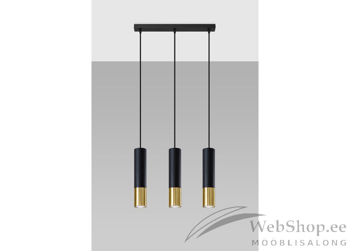 Elegantse välimusega minimalistlik laelamp. Matt must ja kuldne teras toetavad nii klassikalist, kui ka kaasaegset sisekujunduses. Valgusallikas 3x40W võimsusega ning GU10 sokliga. Pinge 220V, kaitseaste IP20. Valgusallikad ei kuulu komplekti.