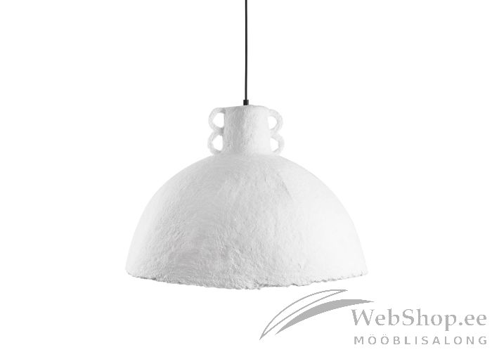 Vahemere stiilis laelamp. Valmistatud valget tooni paberist. Kuplil on kare tekstuur. Tekstiilist kaabel, pikkusega 120cm. Toode on valmistatud käsitööna, ehk iga toode on originaalne. Lambile sobib elektripirn max 60W, sokliga E27. Valgusallikas ei kuulu komplekti. Skandinaavia disain.