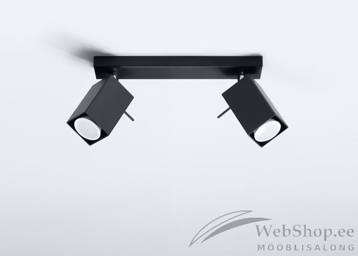Stiilne metallist laelamp. Viimistlus: must. Lambile sobivad elektripirnid 2x max 40W, sokliga GU10. Valgusallikad ei kuulu komplekti. Kuplite suund on reguleeritav.