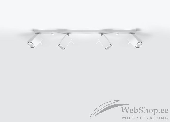 Stiilne metallist laelamp. Viimistlus: valge. Lambile sobivad elektripirnid 4x max 40W, sokliga GU10. Valgusallikad ei kuulu komplekti. Kuplite suund on reguleeritav.