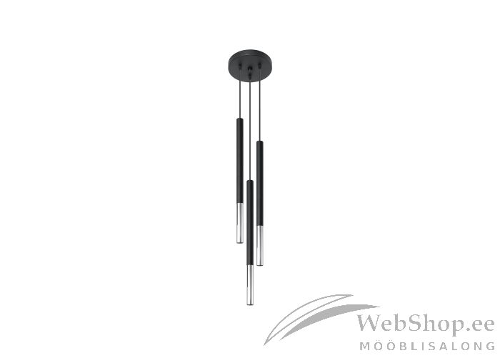 Elegantse välimusega minimalistlik laelamp. Matt must ja läikiv kroom teras toetavad nii klassikalist, kui ka kaasaegset sisekujunduses. Valgusallikas 3x40W võimsusega ning G9 sokliga. Pinge 220V, kaitseaste IP20. Valgusallikad ei kuulu komplekti.