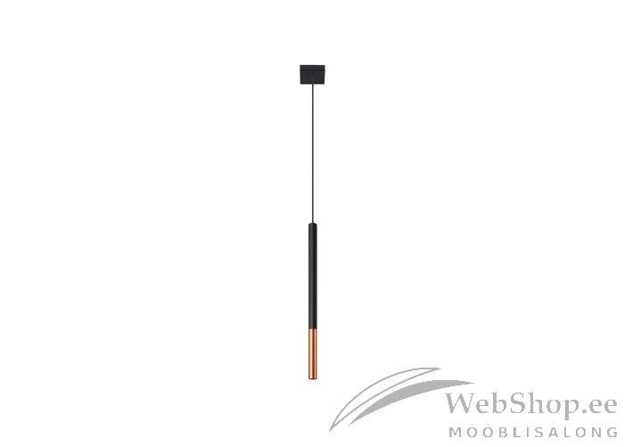Elegantse välimusega minimalistlik laelamp. Matt must ja läikiv vask teras toetavad nii klassikalist, kui ka kaasaegset sisekujunduses. Valgusallikas 1x40W võimsusega ning G9 sokliga. Pinge 220V, kaitseaste IP20. Valgusallikad ei kuulu komplekti.