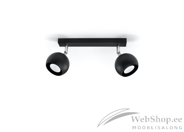 Stiilne metallist laelamp. Viimistlus: must. Lambile sobivad elektripirnid 2x max 40W, sokliga GU10. Valgusallikad ei kuulu komplekti. Kuplite suund on reguleeritav.