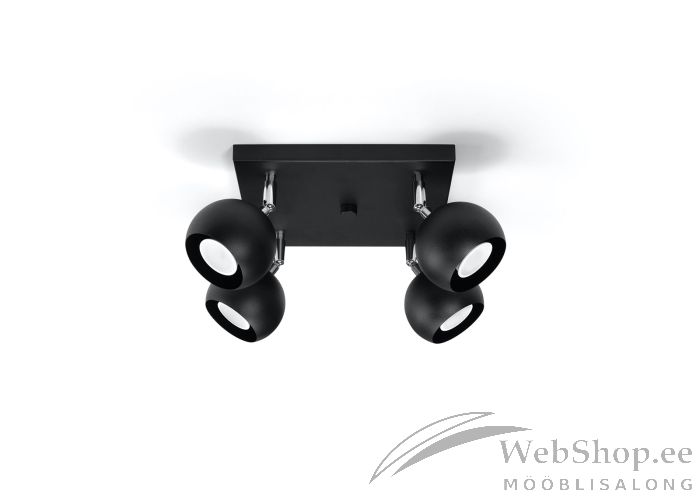 Stiilne metallist laelamp. Viimistlus: must. Lambile sobivad elektripirnid 4x max 40W, sokliga GU10. Valgusallikad ei kuulu komplekti. Kuplite suund on reguleeritav.