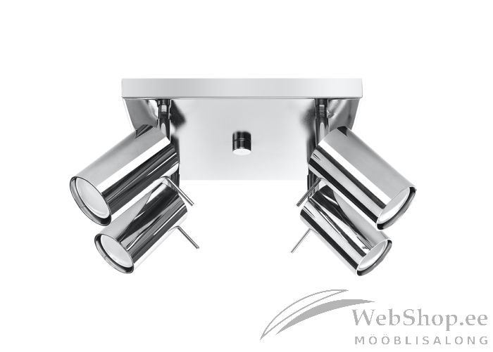 Stiilne metallist laelamp. Viimistlus: kroom. Lambile sobivad elektripirnid 4x max 40W, sokliga GU10. Valgusallikad ei kuulu komplekti. Kuplite suund on reguleeritav.