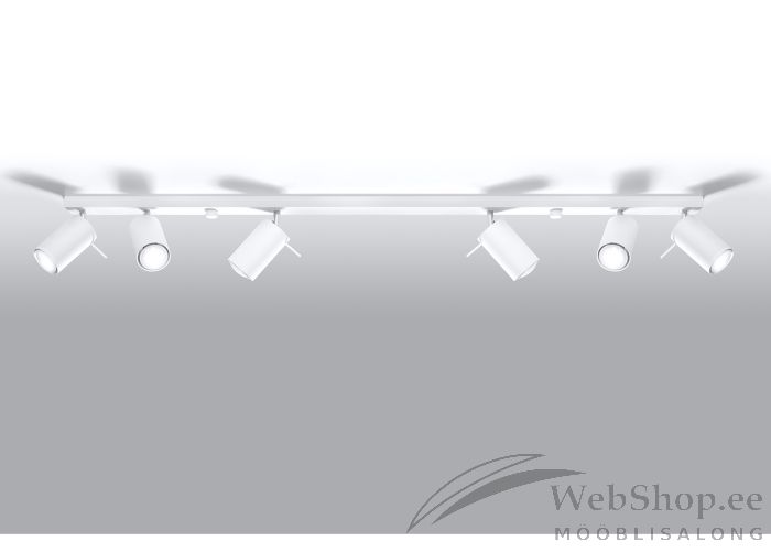 Stiilne metallist laelamp. Viimistlus: valge. Lambile sobivad elektripirnid 6x max 40W, sokliga GU10. Valgusallikad ei kuulu komplekti. Kuplite suund on reguleeritav.