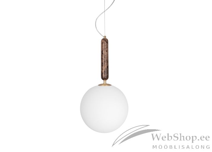 Pruunist marmorist ja valgest klaasist kupliga laelamp. Lambile sobib elektripirn max 40W, sokliga E14. Valgusallikas ei kuulu komplekti. Konkskinnitus. Skandinaavia disain.