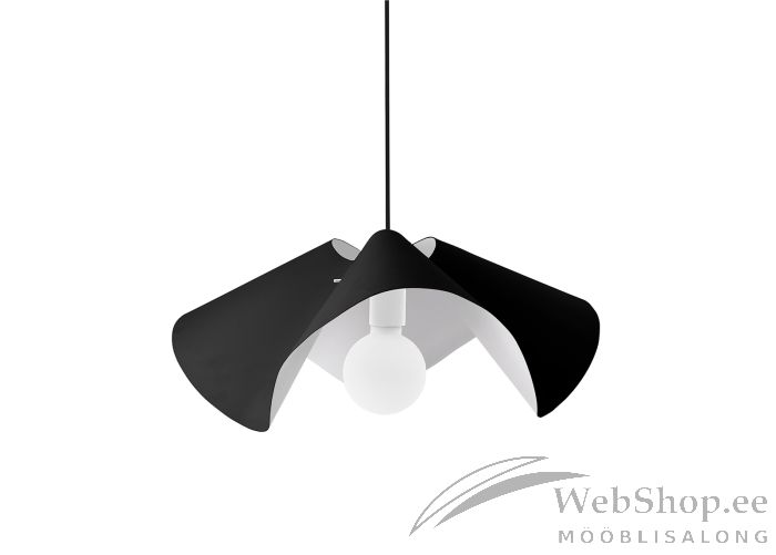 Volangi sarjas kohtuvad lainelisus ja pehmed kujud raske metalliga, mis koos loovad huvitava väljanägemise. Lambi kuppel on pealt must, aga seest valge. Lambil on 120cm pikkune must tekstiilist kaabel. Lambile sobib elektripirn max 60W, sokliga E27. Valgusallikas ei kuulu komplekti. Konkskinnitus. Valgustugevuse reguleerimise võimalus seinalülitist. Skandinaavia disain.