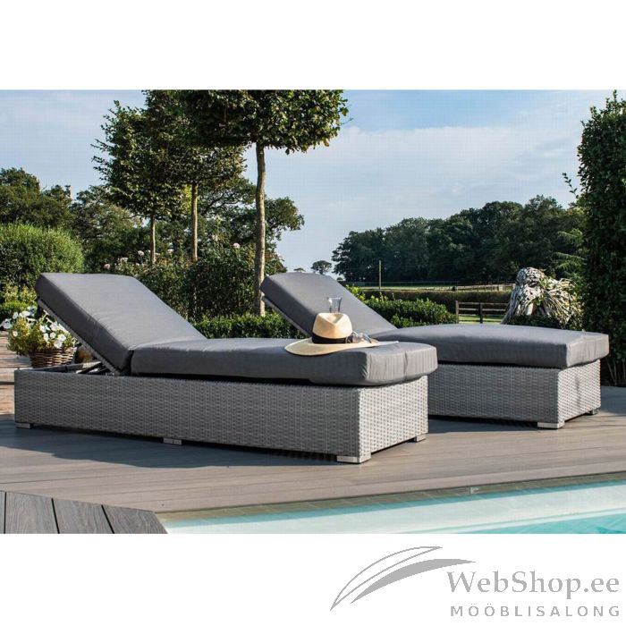 Lamamistoolide komplekt ASCOT on kombineeritav kõigi sama sarja toodetega. Komplekti kuuluvad 2 lamamistooli koos pehmete patjadega ja abilaud. Lamamistoolide ja laua raamid on valmistatud alumiiniumist ja kaetud plastikpunutisega. Lamamistooli mõõdud 195x69xH40/90cm. Padja mõõdud 74/121x67xH11cm. Lamamistooli seljatoe kõrgus on reguleeritav neljas positsioonis. Seljatoe kõrgus 74cm. Abilaua mõõdud 48x48xH37cm, lauaplaat: 5mm karastatud läbipaistev klaas. Toode on muutlikes ilmastikutingimustes vastupidav ja väga lihtsalt hooldatav. Padjakatted on valmistatud väga hea ilmastikukindlusega olefin kangast, kuid liigniiskus võib siiski patju kahjustada ja põhjustada hallituse teket. Hea lahendus patjade igapäevaseks hoiustamiseks ja kuivana hoidmiseks on padjakast. Välitingimustes kasutatava mööbli eluea pikendamiseks soovitame kasutada välimööbli katteid. HOIUSTAMINE: suvehooaja lõppedes soovitame aiamööblit hoiustada siseruumides. Puhastage ja kuivatage mööbel enne hoiule panekut. Kasutage hoiustamiseks jahedat, kuiva ning hea ventilatsiooniga ruumi.