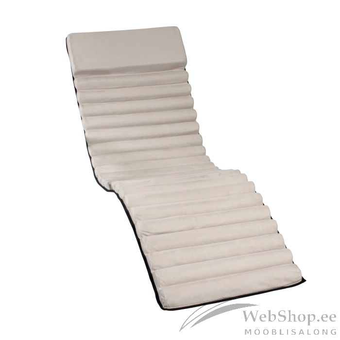 Lamamistoolikate FUN beež. Padja pealmine pool on kaetud seemisnahka meenutava kangaga ning alumine pool on valmistatud ilmastikukindlast oxford kangast. Padja täidiseks on polüester fiiberkiud. Toolikatte paksus on 4cm ja peatoe paksus on 7cm. HOOLDUS: masinpesu ei ole soovitatav.