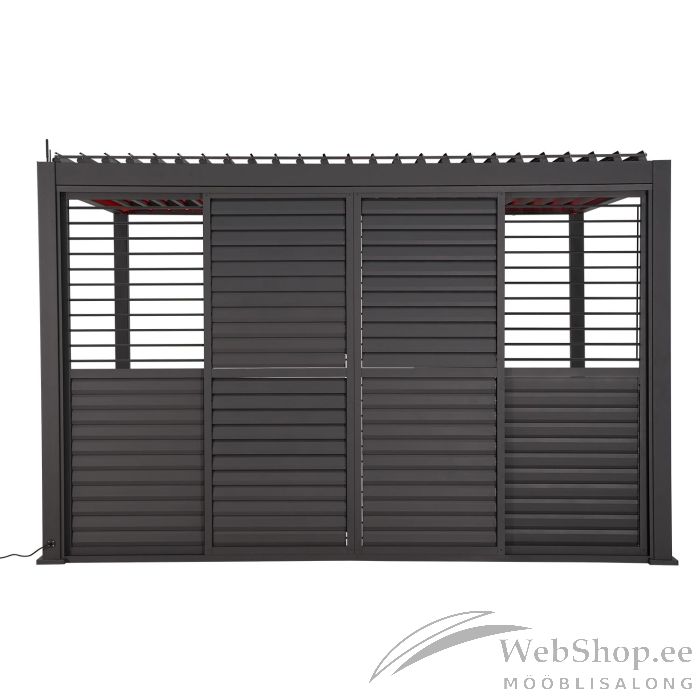 Lamell-lükandsein varikatuse MIRADOR-111 3m küljele, tumehall. Seinapaneeli mõõdud on 2790x2365mm. Horisontaalposti mõõdud on 95x73,9x1,5x1395mm/53x35,5x1,5x688mm/58x35x1,5x688mm. Küljeposti mõõdud on 46,5x39x1,5x2296mm. Lamelli mõõdud on 102x15x1x598mm. Sein on valmistatud alumiiniumist ja kaetud tumehalli pulbervärviga. Tutvuge ka teiste MIRADOR-111 varikatustele pakutavate kardinate ja küljeseinte valikuga!