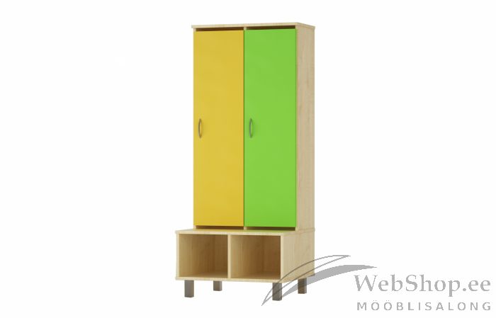 - Kapp uste ja pingi ning jalatsiriiuliga. Uste taga on igas boksis riiul ja 2 konksu. Uste kohal ja all on tuulutusavad.