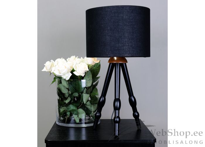 Puidust jalgade ja riidest kupliga laualamp. Kaabli pikkus 200 cm. Lüliti asub kaabli küljes. Sobib elektripirn max 40W, sokliga E14. Elektripirn ei kuulu komplekti.