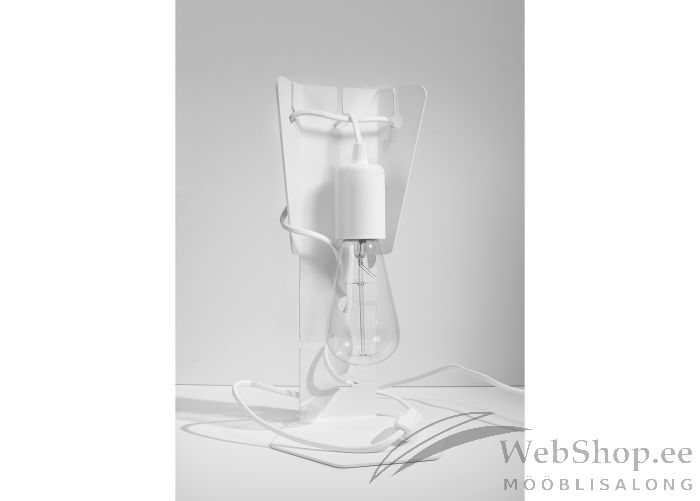 Stiilne metallist laualamp. Viimistlus: valge. Lambile sobib elektripirn max 60W, sokliga E27. Valgusallikas ei kuulu komplekti. Lüliti asub kaabli peal.