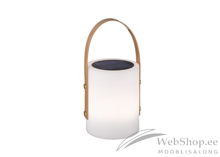 Valget värvi LED tulega laualamp. Lamp töötab aku toitel ning on ka päikesepaneeliga. IP44, ehk sobib kasutamiseks ka välitingimustes. Võimsus: 0.5W. Valgusvoog: 55lm. Valgusetoon : 3000K. Lambil on kaasas pult, millelt on võimalik lambi värvust muuta.