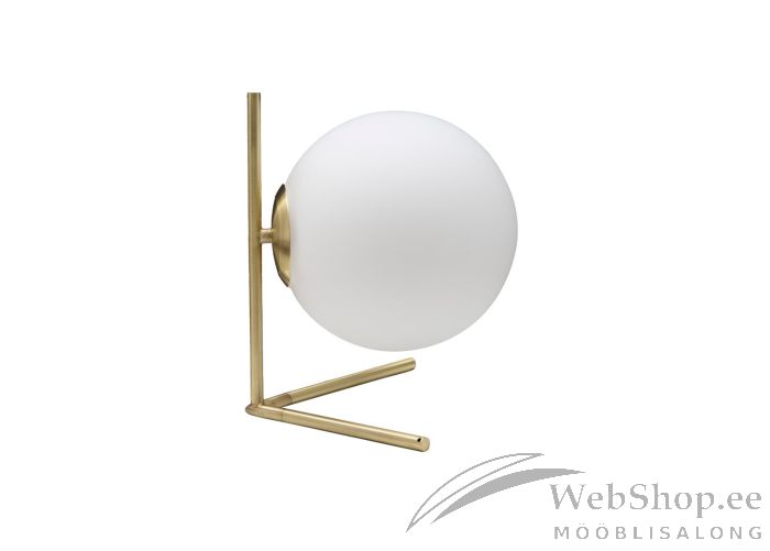Stiilne kulla tooni metallist jalal laualamp. Valget värvi klaasist kuppel. Lambile sobib elektripirn max 40W, sokliga E14. Valgusallikas ei kuulu komplekti.