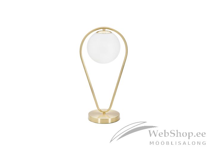 Stiilne ja omapärase disainiga laualamp. Kulla tooni metallist raam ja valget värvi klaasist kuppel. Lambile sobib elektripirnid max 40W, sokliga E14.