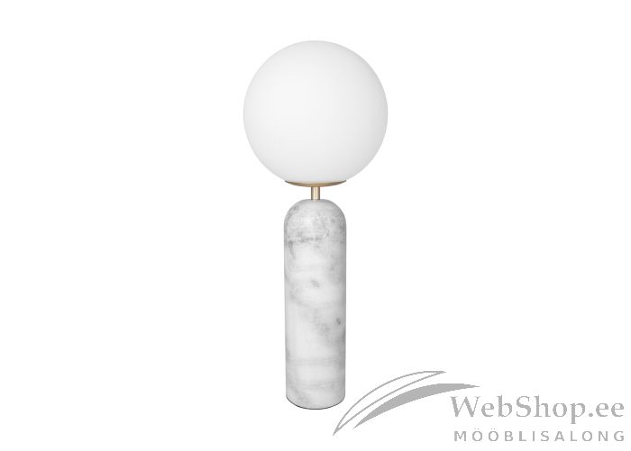 Valget värvi marmorist jalaga laualamp. Lambil on opaal klaasist kuppel. Lambile sobib elektripirn max 40W, sokliga E14. Valgusallikas ei kuulu komplekti. Lüliti asub kaabli peal. Kaabli pikkus on 200cm. Rootsi disain.