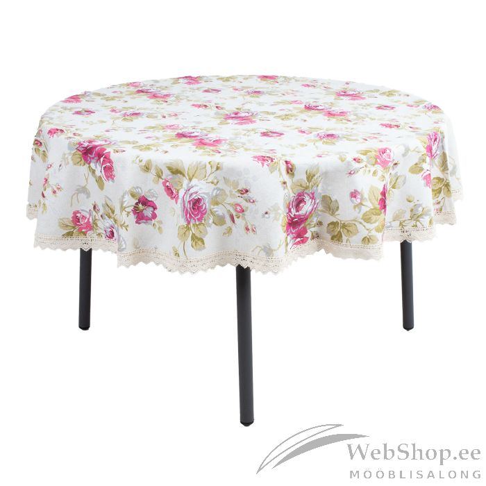 Laudlina LONETA pitsiga, D170cm, roosid. 50% polüester, 50% puuvill, kangas 422. HOOLDUS: võib pesta temperatuuril 30 kraadi pesumasinas.