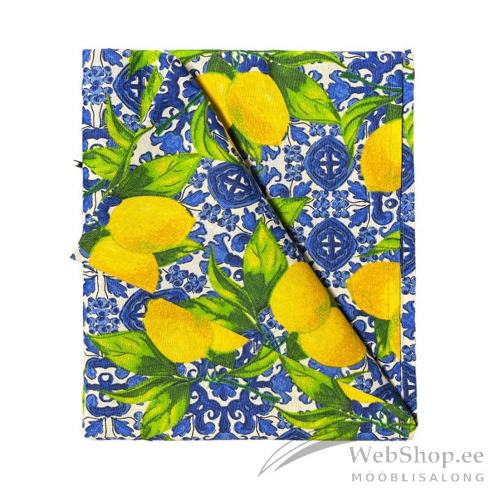 Laudlina LONETA NEW 136x220cm, sidrunid. 50% polüester, 50% puuvill, kangas 478. HOOLDUS: võib pesta temperatuuril 30 kraadi pesumasinas.
