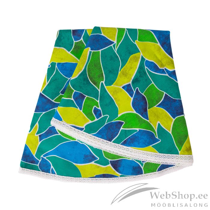 Laudlina LONETA NEW pitsiga, D170cm, rohelised lehed, 50% polüester, 50% puuvill, kangas 481. HOOLDUS: võib pesta temperatuuril 30 kraadi pesumasinas.