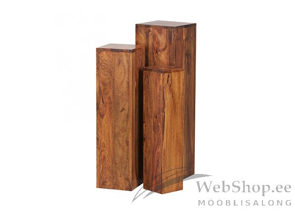 Naturaalsest viimistlemata India roosipuust lillealuste komplekt. Komplekti kuulub 3 erineva suurusega lauda. Iga toode on originaalne ja võib erineda pildil olevast, sest on naturaalsest puidust.