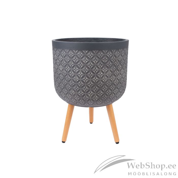 Lillepott SKY PAO D37xH52.3cm, tumehall, puidust jalgadega