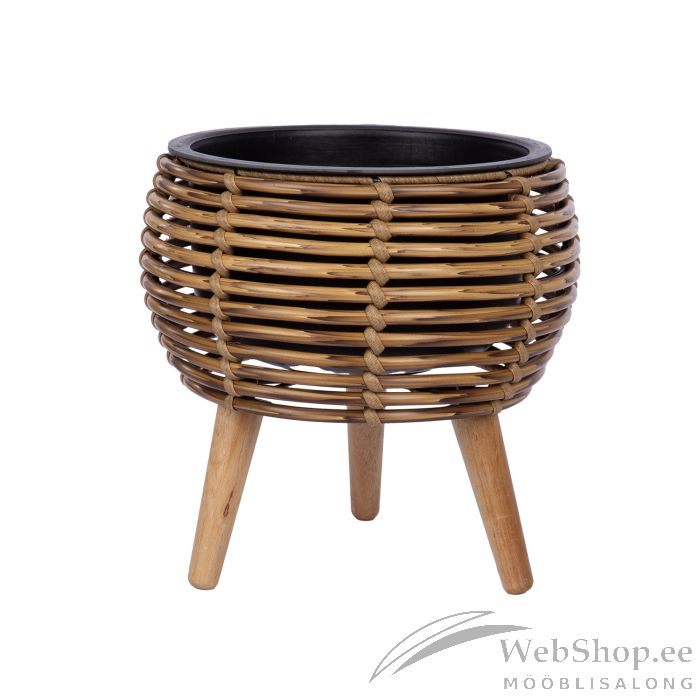 Lillepott WICKER 28 x 28 x H28 cm, helepruun. Lillepoti metallraam on kaetud plastikpunutisega. Plastikust sisepoti mõõdud: D21 x H14 cm. Sisepott on ilma auguta. Jalgade kõrgus 15 cm.