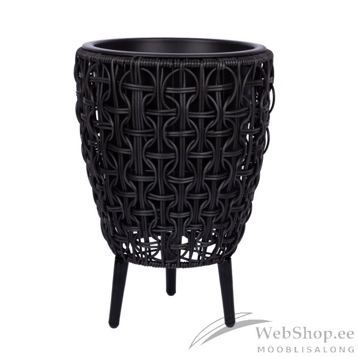 Lillepott WICKER 28 x 28 x H42 cm, must. Lillepoti metallraam on kaetud plastikpunutisega. Plastikust sisepoti mõõdud: D23 x H24 cm. Sisepott on ilma auguta. Jalgade kõrgus 10 cm.