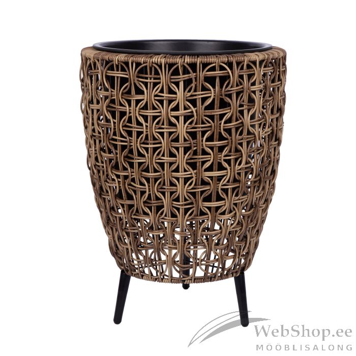 Lillepott WICKER 38 x 38 x H54 cm, pruun. Lillepoti metallraam on kaetud plastikpunutisega. Plastikust sisepoti mõõdud: D30 x H32 cm. Sisepott on ilma auguta. Jalgade kõrgus 10 cm.