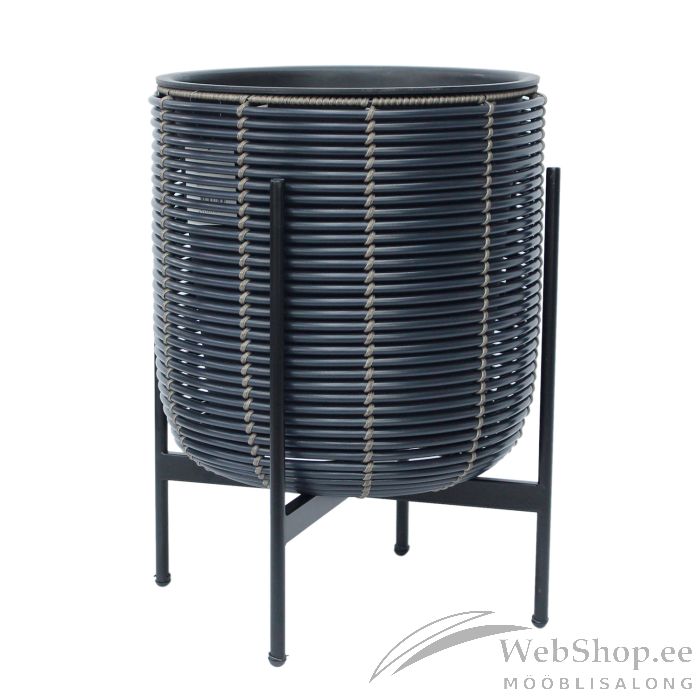 Lillepott WICKER alusega 38x38xH49cm, must. Lillepoti metallraam on kaetud plastikpunutisega. Lillepoti mõõdud on D36xH36cm. Plastikust sisepoti mõõdud on D30xH30cm. Sisepott on ilma auguta. Komplekti kuulub must metallist alusraam.