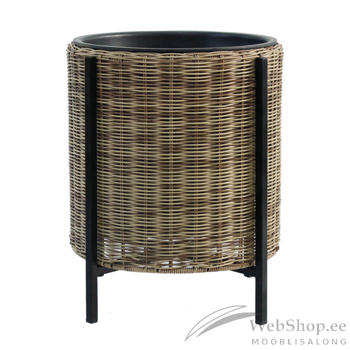 Lillepott WICKER alusega D39xH45cm, helepruun. Lillepoti metallraam on kaetud plastikpunutisega. Lillepoti mõõdud on D36xH35cm. Plastikust sisepoti mõõdud on D30xH30cm. Sisepott on ilma auguta. Komplekti kuulub must metallist alusraam.