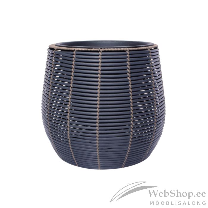 Lillepott WICKER D45xH40cm, must/pruun. Lillepoti metallraam on kaetud plastikpunutisega. Plastikust sisepoti mõõdud on D30xH30cm. Sisepott on ilma auguta.