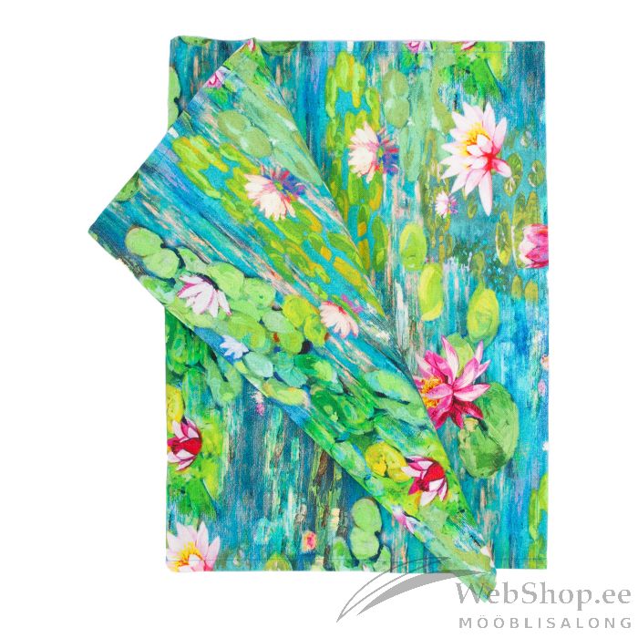Linik HOLLY 43x116cm, roosad vesiroosid. Materjal: 100% puuvill, kangas 315. HOOLDUS: masinpesu lubatud temperatuuril 30°.