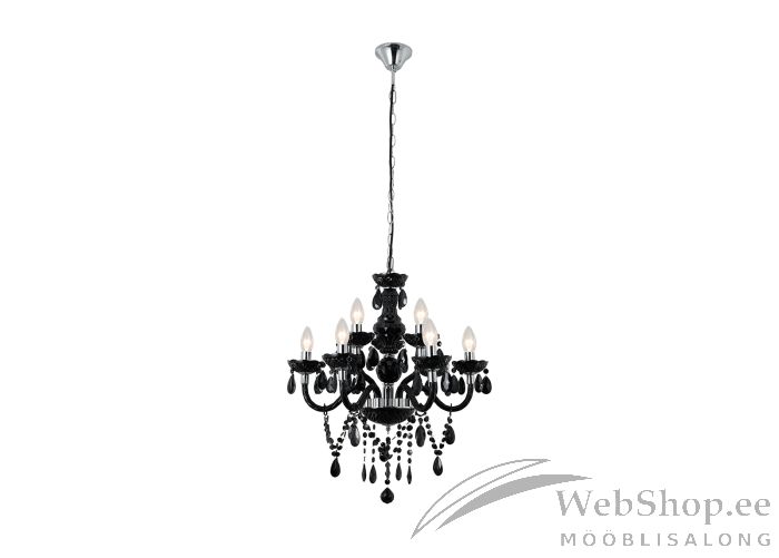 Musta värvi metallist ja akrüülklaasist lühter. Lambile sobivad elektripirnid 9x max 60W, sokliga E14. Valgusallikad ei kuulu komplekti.