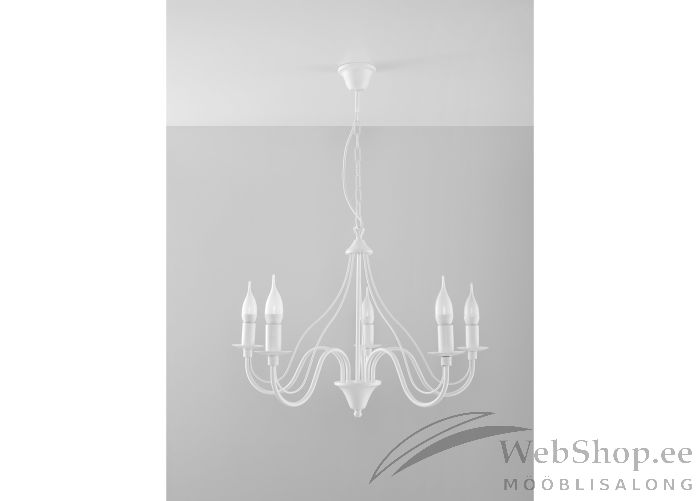Klassikaline lihtsa disainiga lühter. Valgustile sobivad elektripirnid E14 5x40W või 5x12W LED. Valgusallikad ei kuulu komplekti. Viimistlus: valge.